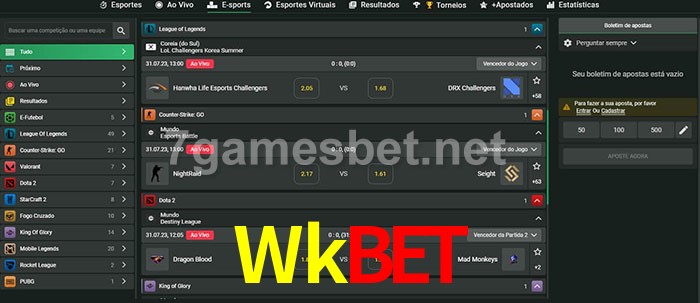 O Wkbet oferece uma grande seleção de opções de apostas em e-sports com probabilidades competitivas